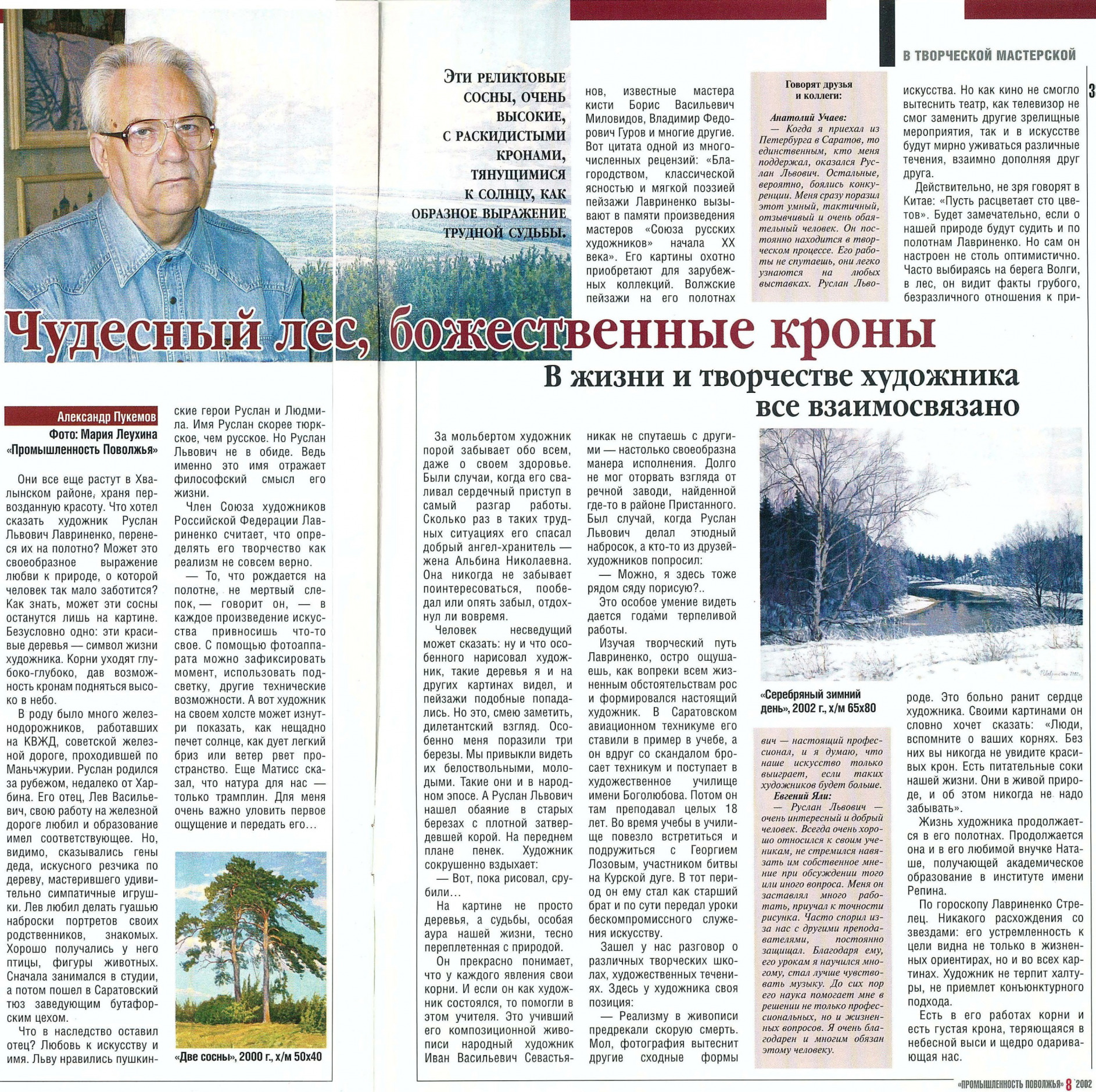 Но природа при этом не смотрится мрачной. Она наполнена покоем и тишиной. Теми свойствами, которые, на взгляд художника, нынешняя сложная и драматическая жизнь, казалось бы, уже утратила. По его мнению, искусство должно нести в себе прежде всего позитивное начало, с тем, чтобы зритель мог ощутить на себе его целительную облагораживающую силу.